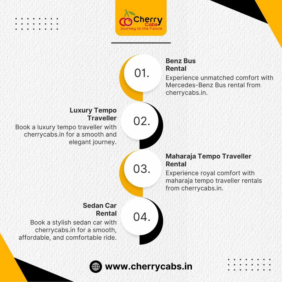 Experience royal comfort with maharaja tempo traveller rentals from cherrycabs.in. Perfect for family outings, weddings, or corporate tours, our luxury vehicles offer plush interiors and ample space. Enjoy safe, comfortable rides with professional chauffeurs. Make your journey special with premium travel solutions designed for your comfort and style.